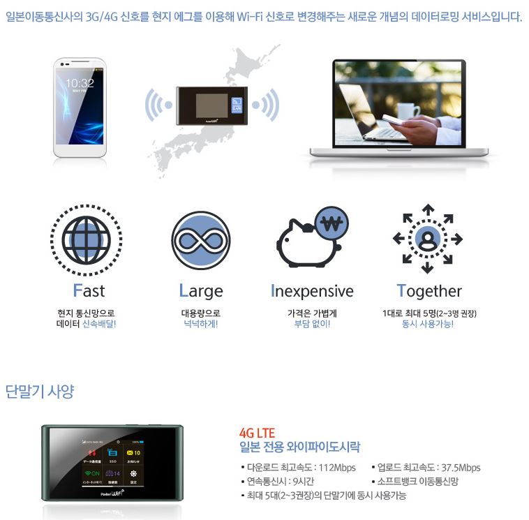 데이터로밍 단말기로써, [와이파이]는 데이터를 + [도시락]은 휴대성을 의미하고 있습니다.