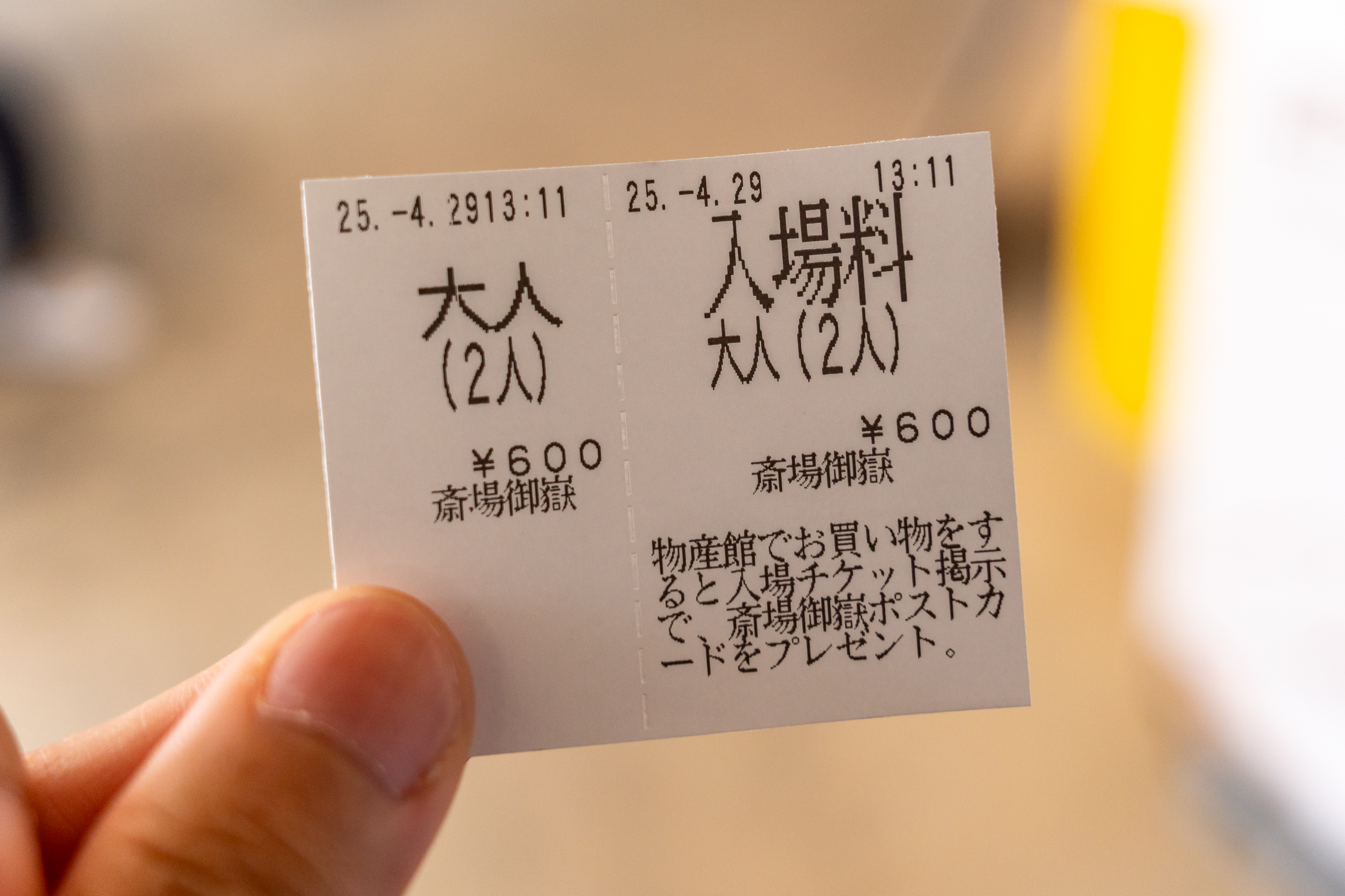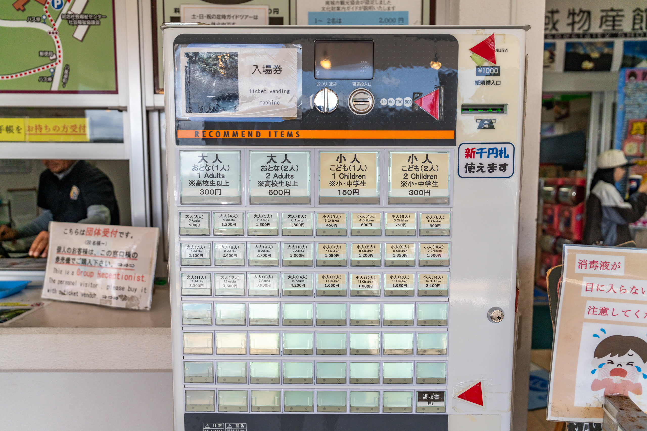 티켓은 주차장 휴게소에서 구입할 수 있습니다. 티켓을 수집하는 취미가 있다면 여기서 구입하지 말고 앞으로 소개할 다른 입구에서 구입하시면 되고, 성인 1인 300엔, 소인 150엔인데, 성인의 기준은 고등학생이상입니다.