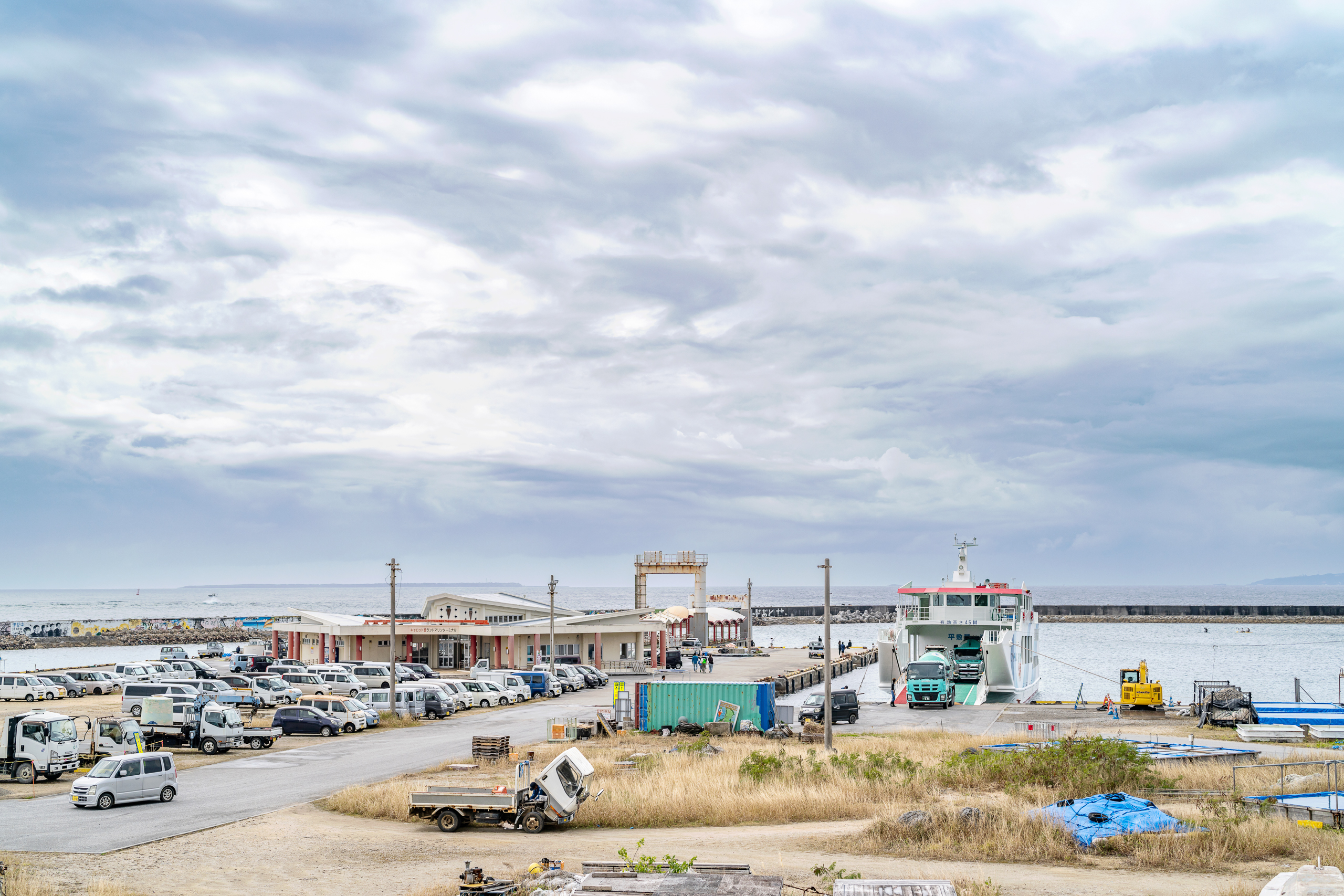 항구 앞에 차량을 주차하고, 단층짜리 건물 매표소로 들어가서 티켓을 구입하세요. 요금은 위의 표로 정리되어 있습니다. 일반 페리는 30분 정도, 고속 페리는 15분 정도 이동을 하면 츠켄섬에 도착할 수 있습니다.