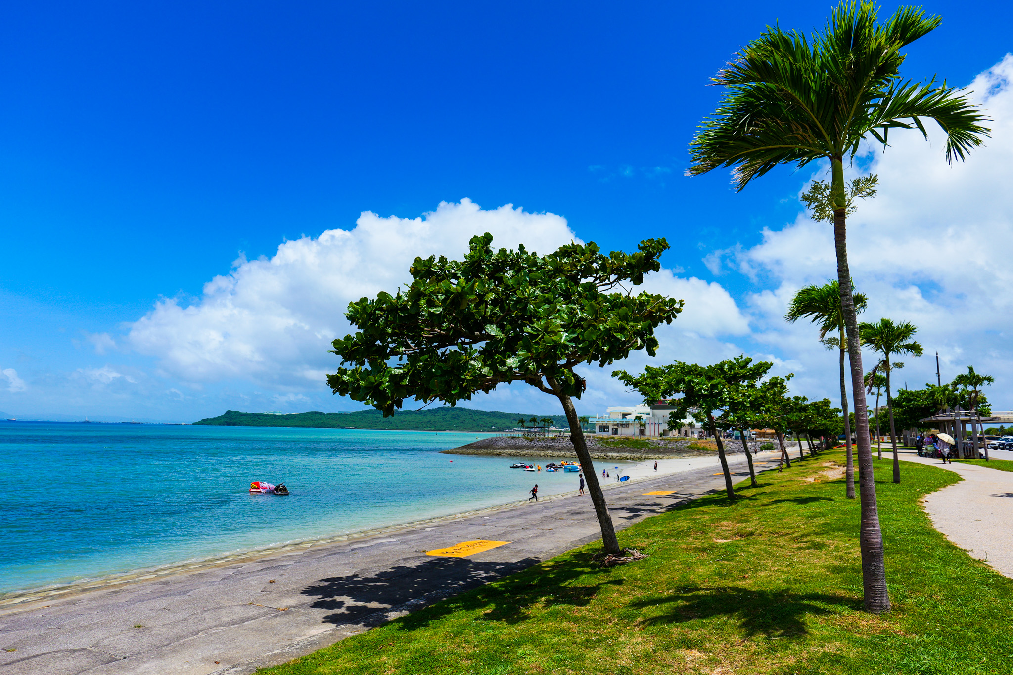 ④ 환상적인 드라이브 코스 오키나와에는 환상적인 드라이브 코스가 많은데요, 비가 오더라도 갈 수 있어요. 대표적으로 남부에 니라이카나이 다리와 치넨미사키 공원, 중부에 해중도로, 북부에 코우리지마 등이 있어요.